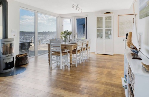 "Rietwoning 16", 4-room house 80 m2 on 2 levels. Bright, comfortable furnishings: entrance hall with separate WC. Living/dining room with dining table, flat screen, hi-fi system and wood-burning stove. Exit to the terrace. Open kitchen (dishwasher, 4 ceramic glass hob hotplates, kettle, electric coffee machine, cooking island, combination microwave). Shower. Underfloor heating. Upper floor: 2 double bedrooms, each room with 2 beds (90 cm, length 200 cm). 1 double bedroom with 1 double bed (1 x 180 cm, length 210 cm). Terrace. Terrace furniture, deck chairs, box-room. Beautiful view of the lake. Facilities: washing machine, children's high chair, baby cot. Internet (WiFi, free). Reserved parking. Electric vehicle charging station. Please note: non-smoking house. Private mooring. Fire extinguisher.