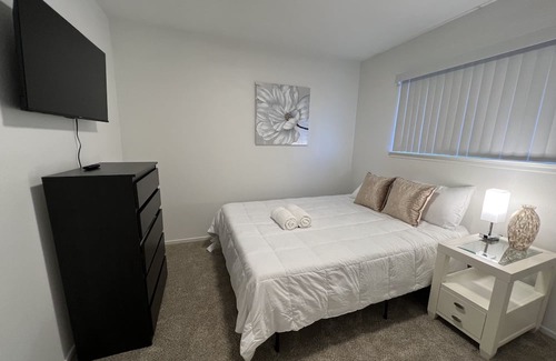 Lovely, clean modern space perfect for traveling professionals, business or families in town for an event. Conveniently located in a quiet neighborhood near restaurants, grocery store, coffee shops, shopping centers, gym and major medical facilities. Easy freeway access. Full amenities included for a comfortable stay including gel foam memory mattress, smart TVs in living room and bedrooms.