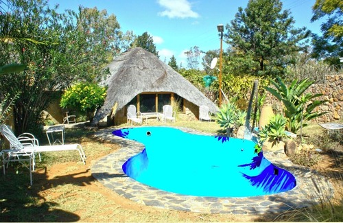 This lodge is in a superb setting, a couple of acres of land in a quiet upmarket suburb of Bulawayo. The very African-themed restaurant is within shrubbery that supports a prolific bird population. The gardens and lawns are well maintained and ideal for hours of bird watching or simple enjoyment of the environment. The photos do not flatter the reality. There is a small pond and swimming pool within the grounds