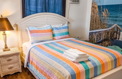 Charming and comfortable, this snowbird-friendly home by the beach will serve as lovely retreats for your group! The space includes three patio deck areas, one to the front and two to the side (perfect for reading one of the included books). Central air-conditioning and ceiling fans provide maximum guest comfort. You'll enjoy the feeling of cool wood and tile-style floors beneath your toes. The backyard is fully enclosed so little ones can run around. Play your favorite tunes on the CD player while cooking in the full kitchen or in the half kitchen! Guests can enjoy the use of two refrigerators, two microwaves, and two kitchen sink areas during their stay.