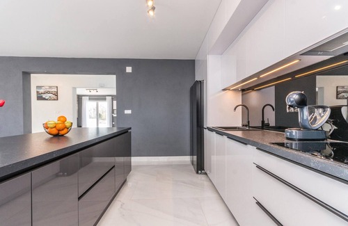 This large house in a beautiful location away from the coast is ideally suited for a carefree, relaxed vacation time in convivial company. Above all, you will enjoy plenty of space to spread out, because over 350 square meters of living space can accommodate up to 10 people. Everything is also prepared for smaller children, so that one or two friendly families can vacation here together. Work out in the gym or jump in the large pool for refreshment before heading out for another day of activities and exploration.