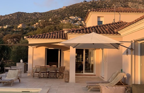 The villa is recent and built on a plot of 7500 m2. It has a large terrace overlooking a secured heated pool (10x4) overlooking the bay of Calvi and the village of Lumio.