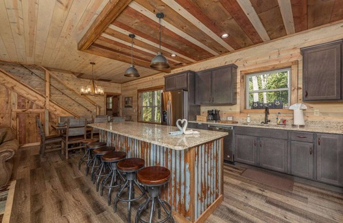 Welcome to Rustic Dreamscapes — a one-of-a-kind cabin that blends rustic charm with luxurious comfort. Featuring uniquely stained tongue and groove walls paired with rusted tin accents, this style of craftsmanship creates a warm, inviting space unlike anywhere else in the area. Perfect for travelers of all kinds!