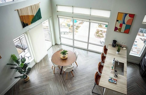 Experience luxury in our penthouse loft located in the heart of SLC. Enjoy stunning mountain views from the open floor plan and modern bohemian decor of the spacious living area with a large flat-screen TV. The fully equipped kitchen and en-suite bathroom with a luxurious shower make your stay comfortable. The central location puts you just steps away from restaurants, bars, entertainment venues, university, hospitals and convention centers. Book now and enjoy the best of Salt Lake City.