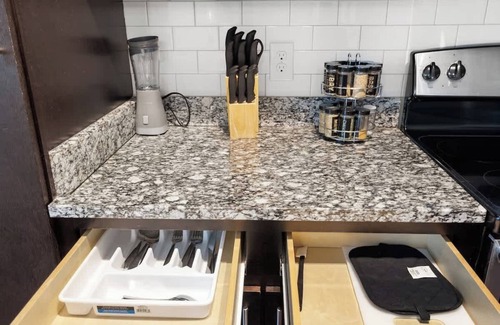 Begin your day with a perfectly brewed cup of tea or instant coffee—decaf or regular—prepared just the way you like it from the convenient coffee station in your upscale kitchen. Whether you're here for business or leisure, this space is designed to provide the perfect balance of comfort and convenience.