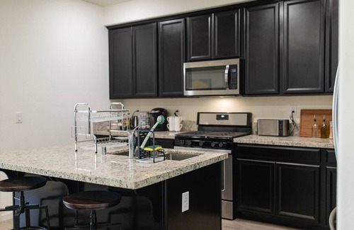 - modern, fully stocked kitchen
