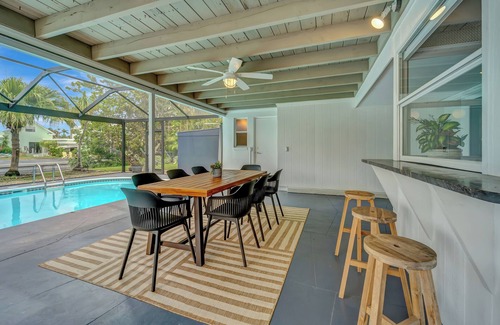 Beautiful Luxe Paradise Escape Home on a saltwater canal to have fun with the entire family. The house features a heated pool, boat access, outdoor shower, ping pong table, fully equipped kitchen, kayaks for your outdoor adventures, board games and many more.