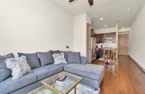 Kick back and relax in this calm, stylish, & sleek oasis! Just steps away from the Galleria. Unwind on our comfy couch or enjoy the relaxing bathtub.