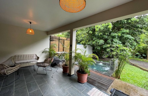 Book now to experience Reunion authenticity in luxurious comfort. This 2 bedroom villa (2 beds of 180x200 cm), with a capacity of 6 people thanks to the convertible sofa in the living room, offers tropical elegance and a refined atmosphere.