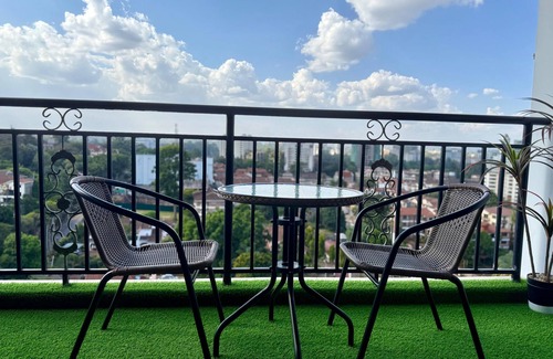 Indulge in the ultimate luxury at this immaculate 2 bed, 2 bath, 9th floor apartment in the heart of Kileleshwa, Nairobi. This exquisite space offers modern comforts with a 1 King XL bed, 1 Queen bed, en-suite double vanity bathrooms with walk in showers, while the living area that boasts a 58" Smart TV with Netflix, Extremely fast Wi-Fi speeds, 4 seater dining table, and a spacious balcony with amazing city views and pool. The kitchen is fully equipped for self-catering guests.
