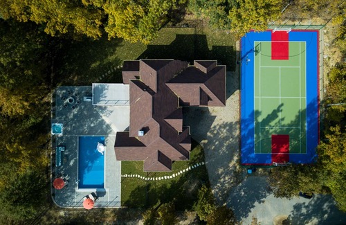 Everything Your Family And Friends Could Ask For.Located in New Buffalo Michigan is this luxurious retreat. You and your family are just steps away from the private Lake Michigan beach. This house has a large complete private fenced courtyard with private heated pool, jacuzzi, fire pit and gas grill for your use. Outdoor decking area has plenty of space for fun. Fully furnished screen porch is attached to the house first floor that enters in to the living room. In the front of the house we provide full tennis/basketball/soccer court that has complete private fence. Inside, the home has an easy, laid back comfortable feeling the moment you enter into the large living room. First floor provides 2 bedrooms with full baths and walk in closets. Two living room areas. One formal dining area with large formal dining table seating up to 10-12 people . Large fully equipped kitchen with all new stainless appliances, granite counters and large breakfast area seating up to 10 people. Not only is this home fully equipped with all dishes, cookware, toaster, Miele built in Coffee machine, but the décor is warm and inviting. Second floor provides with 3 bedrooms and one large bathroom that is big enough for 6 people use. One of the bedrooms on the second floor has private balcony. This house easily fits 10-12 people it's very well cared for and IS NOT A PARTY HOUSE !!!!! Includes a golf cart ( seating for 6 )and it is only 4 minutes drive to Grand Beach's golf course. It's intended for families and friends to have the best time here and to bring home warm and good memories. Free WiFi included plus cable TV and outdoor surround sound stereo ( with downloaded SONO app).