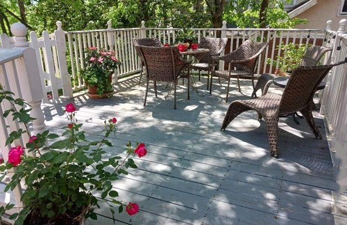 A spectacular private balcony welcomes you to Treetop Cottage. This is a getaway option like no other. Two full bedroom-bath suites, kitchen with separate breakfast room, romantic fireplaces plus complimentary breakfast and off-street parking included. Treetop views from every window compliment the cottage’s update design and vintage charm. King bed-master bath suite with double jetted tub, second queen bed-bath suite with walk-in shower, full kitchen, gas log fireplaces and bonus queen sofa bed await you. Simple joys and lavish amenities… what could be better