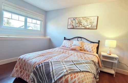 This is a two-story house. The first floor is the living room, dining room and study. The second floor is 4 bedrooms and a laundry room. The tableware, kitchenware and seasonings are very complete. The living room is equipped with an XBOX game console and a network TV. It is very suitable for business trips and family stays.