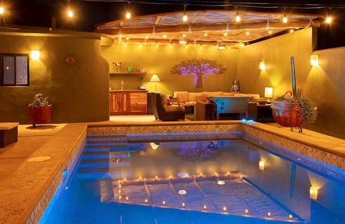 The heart of this Mexican oasis is its private courtyard, centered around a refreshing pool. Here, you can soak up the sun, take a cooling dip, or enjoy a cocktail at the inviting pool bar. For added convenience, a poolside bathroom and an invigorating outdoor shower are just steps away.