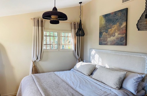 Exceptional view of the sea, vineyards and mountains, for this air-conditioned Mas renovated with Ibizian style charm and comfort.