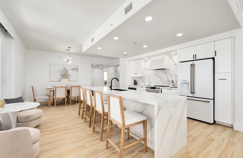 Welcome to BEMI Breeze, a newly renovated luxury accommodation nestled on the white sandy beaches of Panama City Beach. This property's travel-enthused owners collaborated diligently with Casanoah Design Group to create a space of opulence for your escape from reality. Meticulously detailed, this property radiates luxury and is a prized find for any type of traveler. Ample windows wrap the exterior walls which capture and enhance Florida's ever-changing display of colors from daybreak to sunset. Mood boosting attention to detail throughout every inch of this tranquil design will make all the difference in finding comfort and coziness in your temporary home away from home. BEMI Breeze boasts everything brand new for you to enjoy: porcelain wooden tile flooring, a custom kitchen with marble countertops and Cafe appliances, stone feature walls, resort-style bathrooms, designer lighting and fixtures, custom bunks, chic furnishings, plush bedding, and Smart TV's throughout.