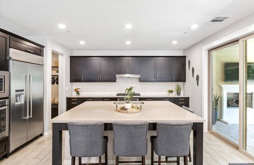 Your beautifully appointed rental is ready for immediate enjoyment with curated living, dining, and bedroom furniture sets. Stay entertained and fit with five large wall-mounted flat-screen TVs throughout the home and a fully-equipped gym in the garage.