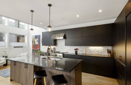 Step outside onto your fully furnished, covered rooftop patio and take in stunning city views while cozying up around the fire pit. Inside, you'll be surrounded by stylish comfort, from the modern kitchen featuring top-of-the-line Jenn-Air appliances to the spacious living areas with vaulted ceilings that let natural light pour in.