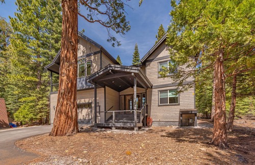From the moment you arrive and lay eyes on the soaring 100-foot cedar pine that welcomes you to this newly constructed, large 5x4 luxury home, you will sense the abundant peace and tranquility afforded by this unique forest setting. The "Cedar Pine House" is situated on a private road and gently sloping lot backing up to thousands of acres of Tahoe National Forest making you instantly feel at one with the wilderness. Trailheads await out the back yard leading to spectacular lake vistas as well as a short walk to North Tahoe Regional Park - complete with tennis, new pickleball courts, soccer, treetops ropes course and zip lines, disc golf, fitness parcourse, and play structures – all tucked back in the forest out of sight and earshot of Cedar Pine House. In the winter, snowshoeing, cross country skiing, sledding, and snowmobiling beckon.