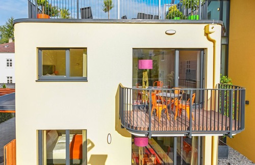 The spacious, urban-luxurious apartment offers 70m2 two double rooms for 4 people (+ max. 2 additional people, hotel sofa). The exclusive bathroom is equipped with a shower and hairdryer. The toilet and urinal are created separately. The stylishly furnished living room with large flat screen TV, HiFi system, DVD & Blu Ray player invites you to relax. The high-quality kitchen, including dishwasher, microwave and Nespresso machine, includes delicious cooking and a nice get-together. Starter capsules. We also thought of our little ones. The baby package with cot, high chair and bottle warmer is available free of charge in the apartment. A garden / balcony is part of your personal retreat.
