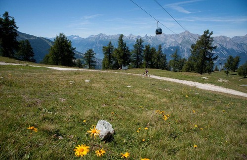 This charming 3-room apartment in Veysonnaz offers an inviting base for a group or family of up to 5 guests. With magnificent views of the mountains and Rhône Valley, it provides a relaxing retreat after a day outdoors. Inside, you'll find a cozy living room with a TV, and a well-equipped kitchen featuring an oven, toaster, kettle, coffee machine, and dishwasher. The sleeping arrangements include a master bedroom with a double bed and a second bedroom with a single bed plus a bunk bed, perfect for children or friends. A bathroom with a bathtub and a separate WC adds to your comfort. Please note, pets are not permitted. Located just 120 meters from the gondola, this apartment provides effortless access to the slopes in winter and hiking trails in the summer. Shops, restaurants, and local attractions are within 650 meters, making it easy to explore everything Veysonnaz has to offer. Whether you're skiing in the Alps or enjoying mountain walks, the central location keeps everything close by. The apartment features a furnished balcony where you can unwind while admiring the stunning scenery. For added convenience, the building includes a ski room and laundry facilities. One indoor parking space is available (subject to availability). Guests benefit from free access to the public swimming pool in summer and winter, as well as discounted rental equipment through Alpvision’s partners. Optional services such as linens, towels, and final cleaning are available for an extra fee.
