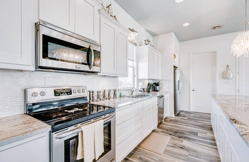 Four spacious bedrooms offer comfortable and private accommodations for your entire group, ensuring everyone has a place to unwind after a fun-filled day by the sea.