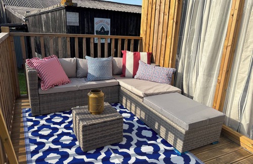 Escape to the tranquil beauty of the coast in our brand-new, luxurious "Ebb & Flow" cabin! This isn't just glamping; it's an experience. Formerly a bell tent, this unique space has been transformed into a stunning seaside haven perfect for couples, small families, or friends seeking a relaxing and unforgettable getaway.