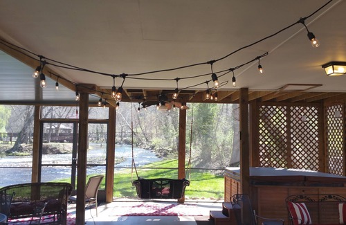 Chattahoochee Chalet has a spectacular outdoor living space on the river with that features the following: