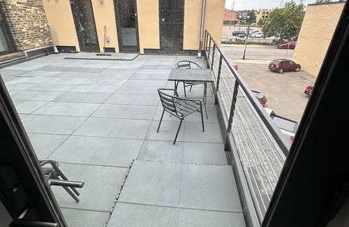 Welcome to The Penthouse! Luxury living in THE HEART of Downtown Fargo! This brand new condo includes a plush queen bed, full bathroom with a large soaking tub, queen sleeper sofa, full kitchen with brand new appliances, 65” TV with steaming, in-unit washer and dryer, table and chairs for 4, powered room darkening blinds, fully stocked kitchen and bath, extra bedding & towels, games and puzzles, private access to rooftop patio, a heated attached garage, and…a gum ball machine! :)