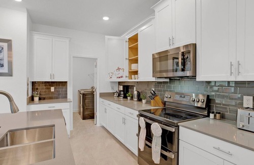 The kitchen in this home is clean, pristine, and luxurious with exquisite decor. Granite countertops, stainless steel appliances, and a dazzling backsplash all outline this kitchen. If you decide to come for the holidays, you can prepare a meal for 12 in no time. If you’re here on vacation, happy hour will be a breeze to whip up. Either way, this chef’s kitchen is a true dream!