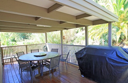 Spread across two levels, this spacious accommodation features four beautiful bedrooms, providing ample space and privacy for everyone. The upstairs area boasts a living area, kitchen, and dining table, allowing for enjoyable meals and quality time with loved ones. Step out onto the back veranda and immerse yourself in the serene surroundings, offering a peaceful retreat amidst nature.