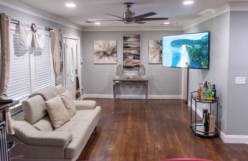 Restaurants, shops, and bus routes in metro Atlanta will make this a vacation to remember. My spacious 4-bedroom home comes complete with flat screen smart tv’s in every room, 3 full bathrooms, 2 kitchens, washer & dryer, and a patio great for relaxing that will make you wish you could stay even longer. During your stay, you can also enjoy using a convenient self check-in, Wi-Fi, LED mirror in bathroom, & a huge flatscreen tv in the living room for bingeing your fav shows or catching a sports game. Grocery stores, shopping malls, dine in and fast food restaurants nearby at your convenience!