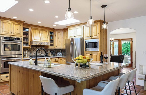 Begin your day on the right foot by enjoying a delicious breakfast and a cup of coffee at the kitchen island or one of the outside patio areas. When it's time for lunch or dinner, the dining table provides the perfect setting to gather and enjoy a meal.