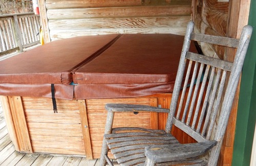 There is a hot tub on the deck, which overlooks the forest.