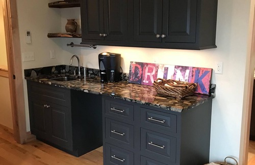 2 bedrooms on the ground floor, handicapped accessible, full laundry, equipped kitchen. Incredible views, hiking trails, and fine craftsmanship throughout. Two King beds and one Queen bed. Wood floors throughout with granite in the kitchen and bathrooms. Large covered outdoor decks with comfortable furniture, 3,500 ft elevation, paved road and gated access.