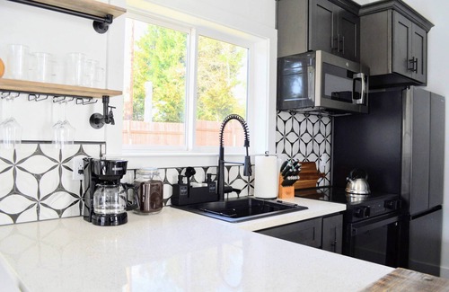 The well-appointed kitchen is a culinary haven, fully stocked and ready for you to prepare delicious meals. Whether you’re hosting a family dinner or a fun gathering with friends, this modern kitchen provides all the tools and space you need.