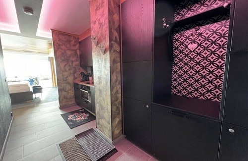 Layout: Ground floor: (hallway(Mirror, Wardrobe, Wardrobe Coatrack), relaxation area(Relaxation Room, Cabin, sauna, swimming pool)) Elevator, Hot Water, Safe, Vacuum Cleaner, open kitchen(Tea Towels, hob, electric kettle, toaster, toaster, coffee machine, oven, fridge), Living/bed room(Armchair, Bed Linen, Desk, Mirror, double bed, TV, radio), Living/diningroom(Desk, Mirror, TV, dining table), bathroom(Mirror, Cabin, toilet, shower, washbasin, hairdryer), Internet access, washing machine, balcony(Sun Umbrella, garden furniture), heating, parking, ironing board, iron, lounge set(Table tennis), drying cabinet