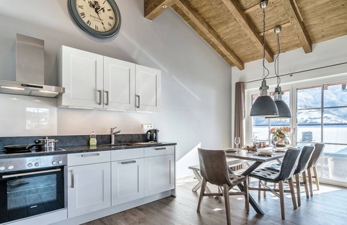 Due to the high ceilings, stylishly made of wood and of course handcrafted with typical Austrian details, this penthouse immediately offers a homely feeling. The living room with modern open kitchen offers plenty of space and has both a dining area and a seating area. There are also 3 large bedrooms with box-spring beds and 2 bathrooms, all furnished to a high standard. The bathrooms are equipped with small luxury items.
