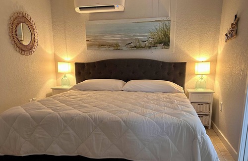 The casita is located in a 55+ Resort community. The Resort has a key West feel with room for RV parking and brightly colored casitas with beautiful tropical landscaping. It has one king sized bed, a 55 inch smart tv, a bathroom with tub and shower, and a kitchen with stove, microwave, dishwasher, refrigerator, washer, and dryer. You will have access to all resort amenities which include a pool, hot tub, theater, and gym.