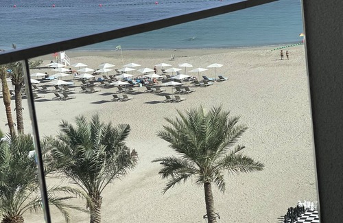 Very beautiful four bed Apartment each room with en-suite toilet, flat screen TV , direct sea view balcony, direct access to the beach , highly equipped kitchen.. don’t miss this place if you are planning to come to UAE