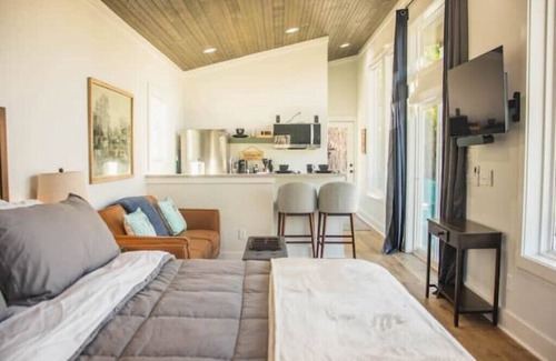 Nestled on 66 acres with a gorgeous pond/farm view, you will find Goat Daddy's Farm and Animal Sanctuary. Our luxurious tiny house has everything you need to make your farm stay comfortable and relaxing. Guests will have access to the farm during specific hours, as well as over 2.5 miles of paths and two ponds to explore. With your feet in the sand, by a fire, in the hot tub, on the trails, or getting some goat/animal therapy, The Farmhouse and Sanctuary has something to offer for all.