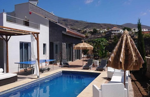 Spectacular 3 bedroom villa, overlooking the sea and the Jacuzzi mountain, play tennis. To enjoy with family or friends, peace and relaxation in a unique environment. Close to good steak and fish restaurants and good wine. Very close to motorway connection to see the island, El Teide, Loro Park, Siam Park and Santa Cruz the capital. In the villa you can play, pin-pon, make BBQ, enjoy the private pool. Wonderful weather. Tenerife the Friendly Island.