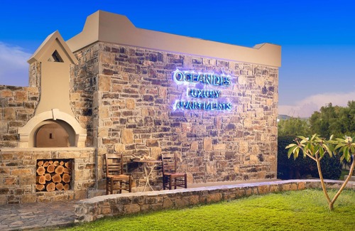 All apartments are five. There are three on the ground floor and two on the 1st floor (10-15 stairs)All apartments have 2 bedrooms( one with double bed,iron, satelite tv, air condition,wardrobe, safe box, free /strong sign wifi and window with garden view )and other one bedroom with 2 single beds, air-condition, dresser, suitcase furniture e.t.c) , bathroom with a shower, kitchen(fridge,oven, coffee maker, e.t.c).Veranda with sea-pool view, table and chairs for relaxing and eating meals. Free laundry service is provided also as swimming pool towels. All apartments have been decorated by Nectarios's sister - a very famour artist/decorator in Sitia who is a jewel artist as well.There is a big swimming pool-suitable even for small children- , with sunbeds near the garden and a comfortable hammock beside the pool.Beautiful garden with trees and plants,comfortable sofas by the pool for relaxing , secure enviromment for children, private parking. Our propery is 2klm driving from the Centre of Sitia,away from noise and crowded places.It's 1 klm near the organized beach and 100 meters near the sea.The owners Nectarios and Kelly(gymnastic and music teachers) are willing and happy for everyone.Nectarios is all day around our property , offering cold drinks and coffee to everyone is around the pool, discussing with our clients as a friend, about making a good plan of the days of their stay( recommending them all the MUST places to visit, to swim, to eat, to discover our nature, to visit arceological places, shops , cafeterias or nightlife bars.