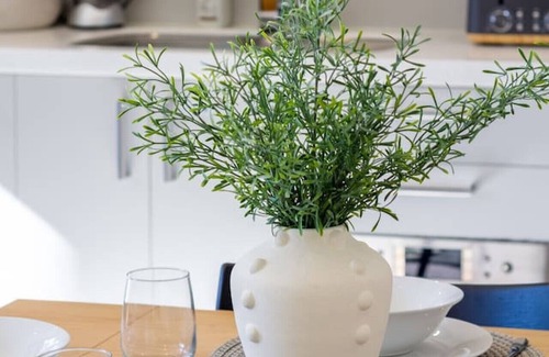 The kitchen is fully equipped with modern appliances including a fridge/freezer, microwave, hob, and oven. Basic cooking essentials like salt, pepper, and oil are also provided. For longer stays, a washing machine and dryer combination unit is available with washing powder provided for convenience.