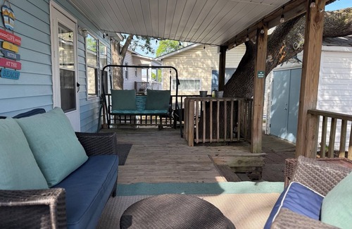 Stay comfortably in Ocean Lakes at this 2-bedroom cottage. With 1 queen bed and 1 bunk bed, guests can relax and unwind in this cozy space. Enjoy the convenience of amenities like a washing machine, WiFi, and complementary golf car . The front porch is welcoming and relaxing to unwind afer a day on the beach or water park. We hope you'll enjoy your stay at our cottage.