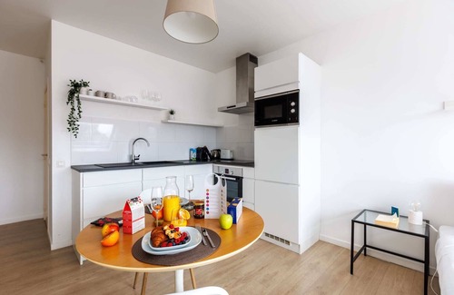Modern and airy, the cosy MA - Parlement II Sweett studio apartment is a delight. Our local interior designer has skillfully designed a space that is both charming and comfy, creating an inviting atmosphere that is perfect for relaxation. The carefully chosen colour scheme enhances the overall ambience, promoting a sense of calm and tranquillity.