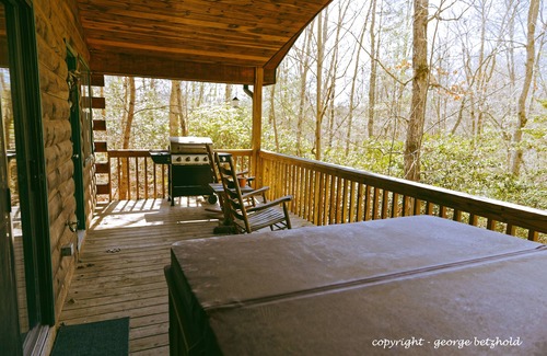 On the covered porch, you can soak in the hot tub while sipping your coffee or wine. We also drain and clean the hot tub after every guest leaves. We only add a couple of 1" tabs of bromine (no other chemicals) to insure a pleasant guest experience. Ask our competitors what their policy is.