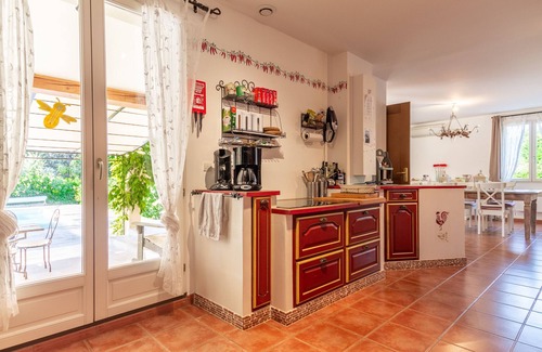 This holiday home offers a very comfortable and cosy Interior. The furniture was very carefully selected. Here, you get the real holiday feeling. Both from the kitchen and the living room you have immediate acces t the terrace.