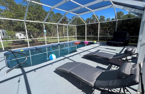 Welcome to Magical House Naples — a spacious 5BR, 3BA retreat that sleeps 14! Relax in your private pool, hot tub, and firepit, or unwind in hammocks beneath the trees. Inside, enjoy 2 living rooms, a pool table, smart TVs in every bedroom, and a fully equipped kitchen with plenty of dining space. Just 15–20 minutes from downtown Naples and white-sand beaches, it’s the perfect getaway for families and groups seeking comfort, fun, and unforgettable memories.