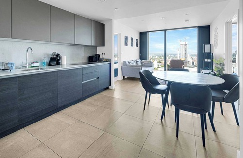 A luxurious 2-bedroom apartment featuring a breathtaking view of the Birmingham's skyline, with a sleek, modern kitchen and open plan living area. An ideal home away from home to explore Birmingham and all that it has to offer.